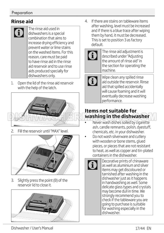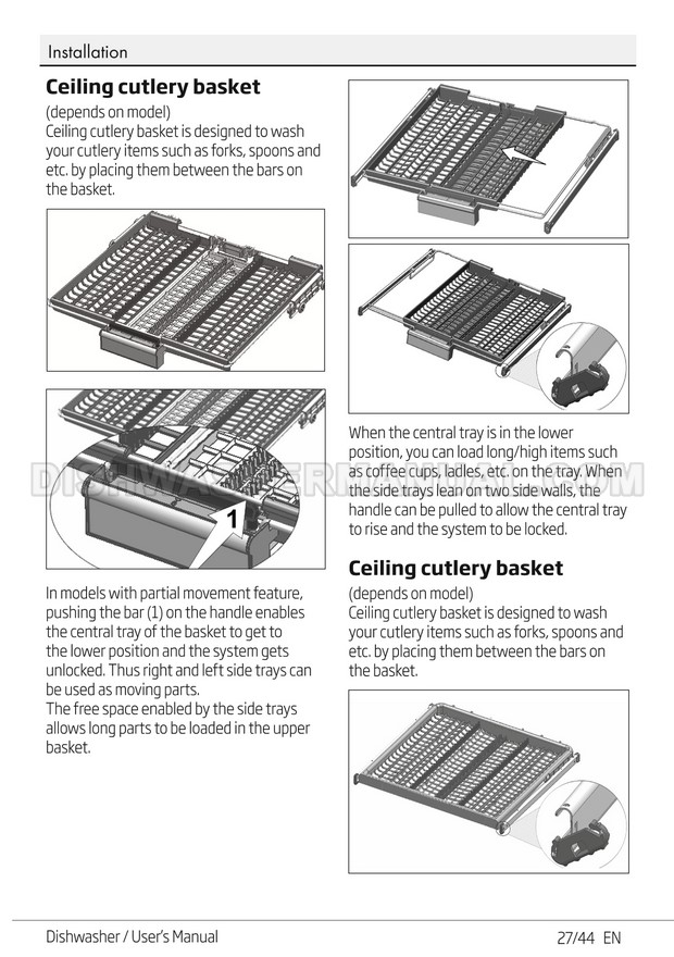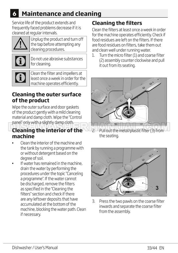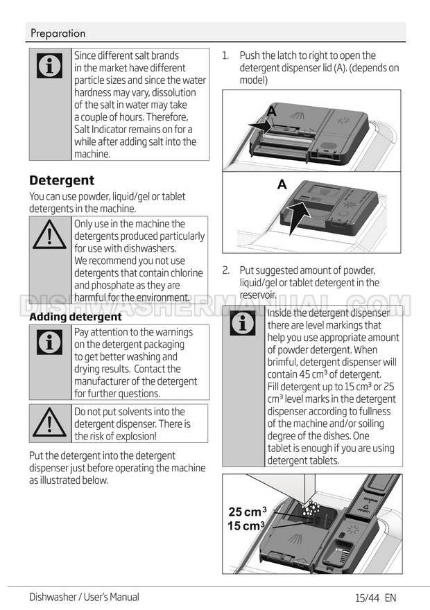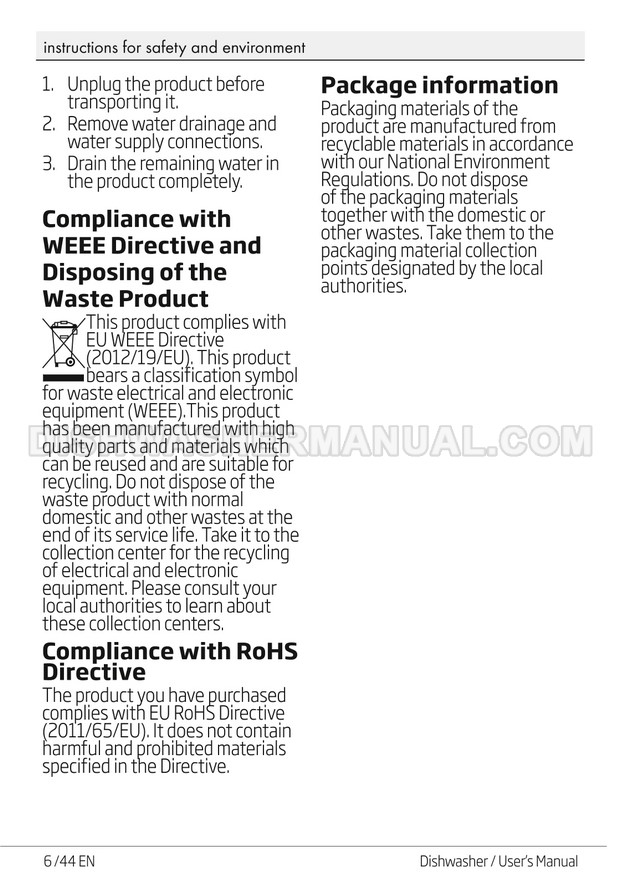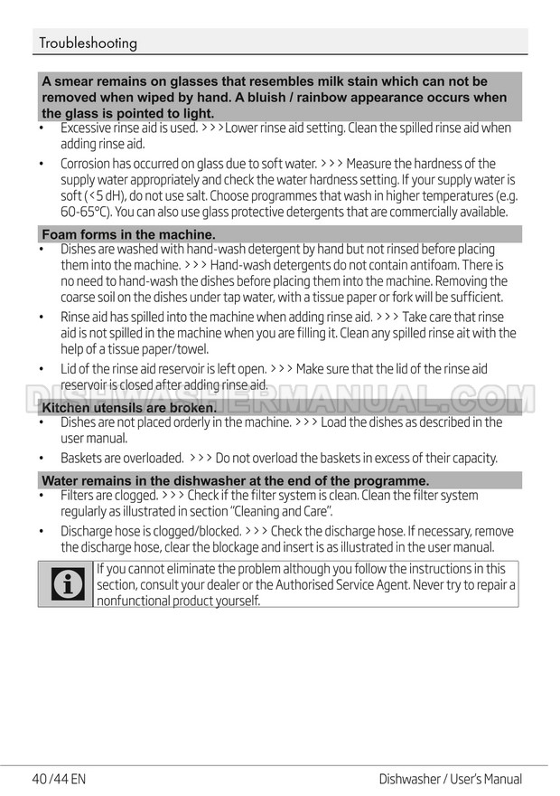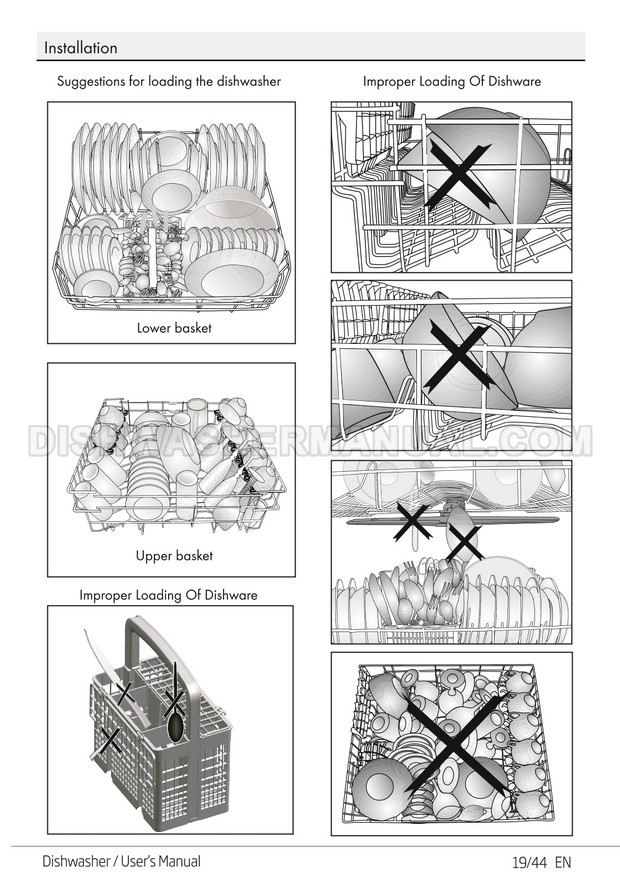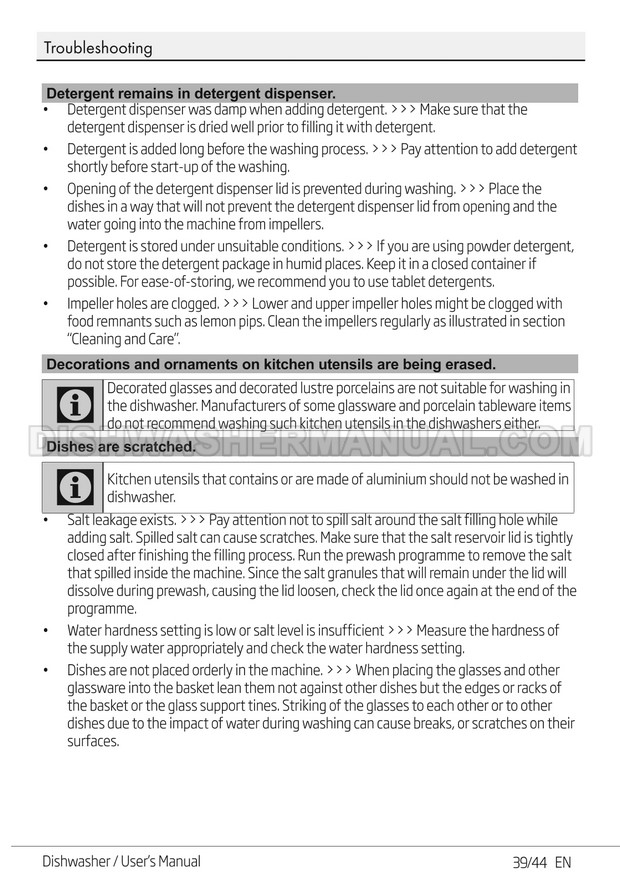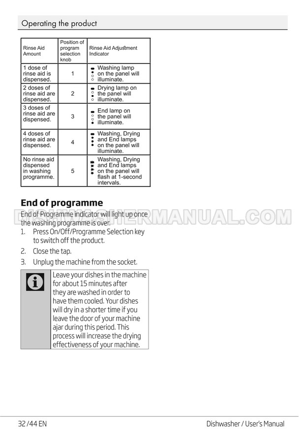 User's manual for Beko DF14W Voltas 60cm white 14 place setting full size dishwashing machine with front control on 45 pages.