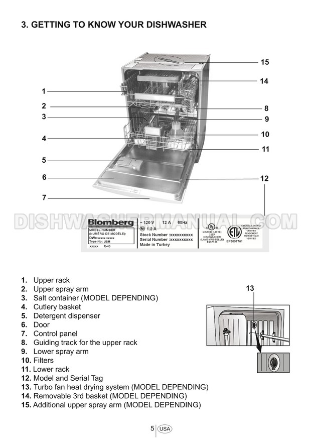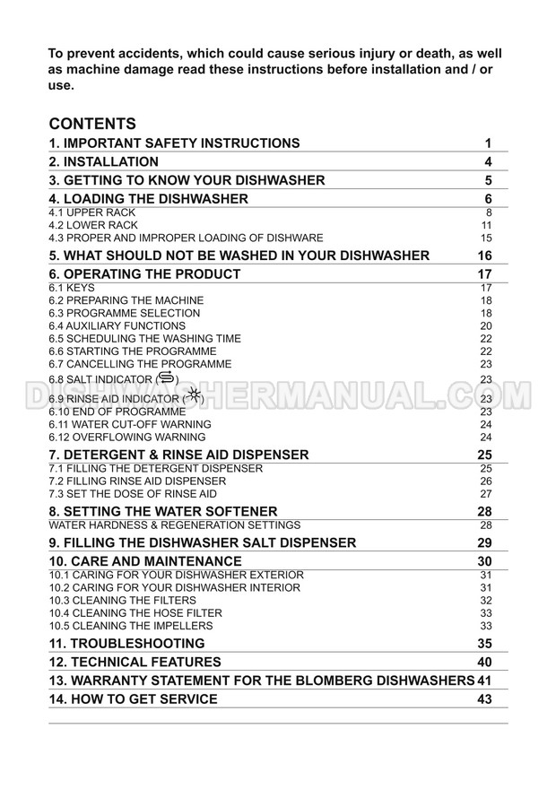 User manual for Blomberg DWT58500FBI 24" Tall Tub 24" Tall Tub Silent Operation 8 Cycles dishwashing machine with top control on 47 pages.