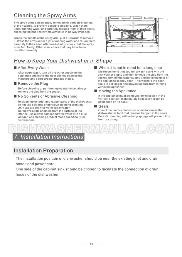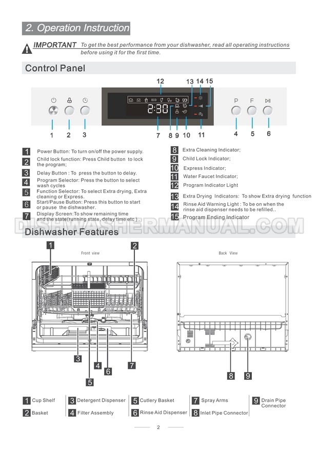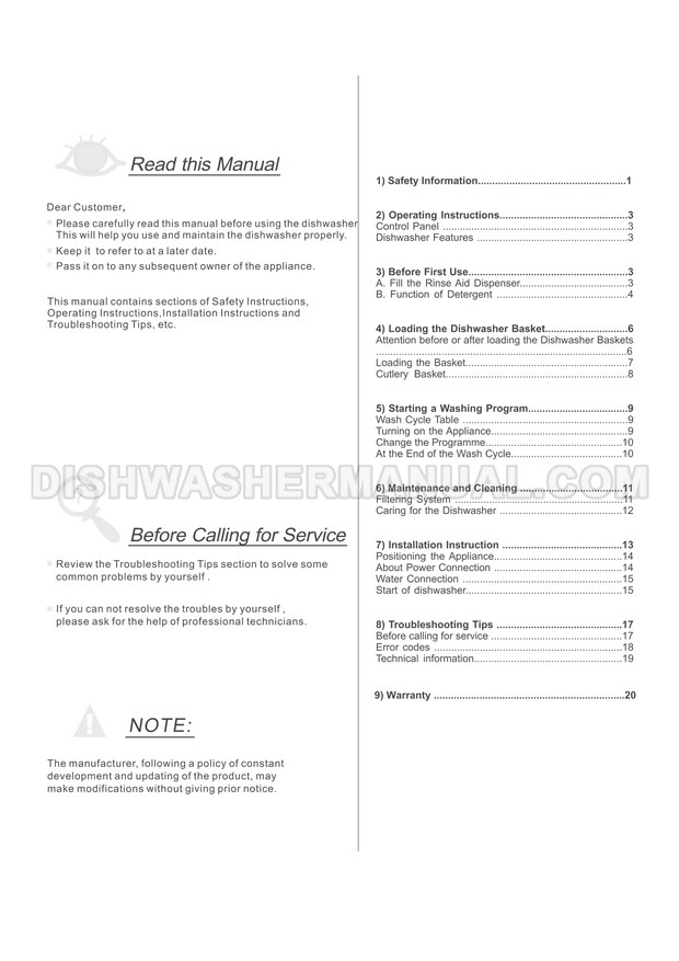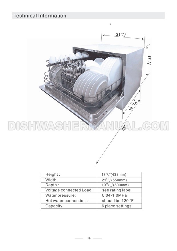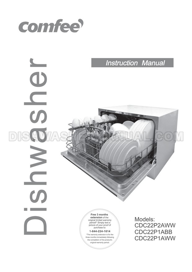 Instruction manual for Comfee CDC22P1ABB counter top small portable 6 place setting capacity black dishwashing machine with front control on 22 pages.