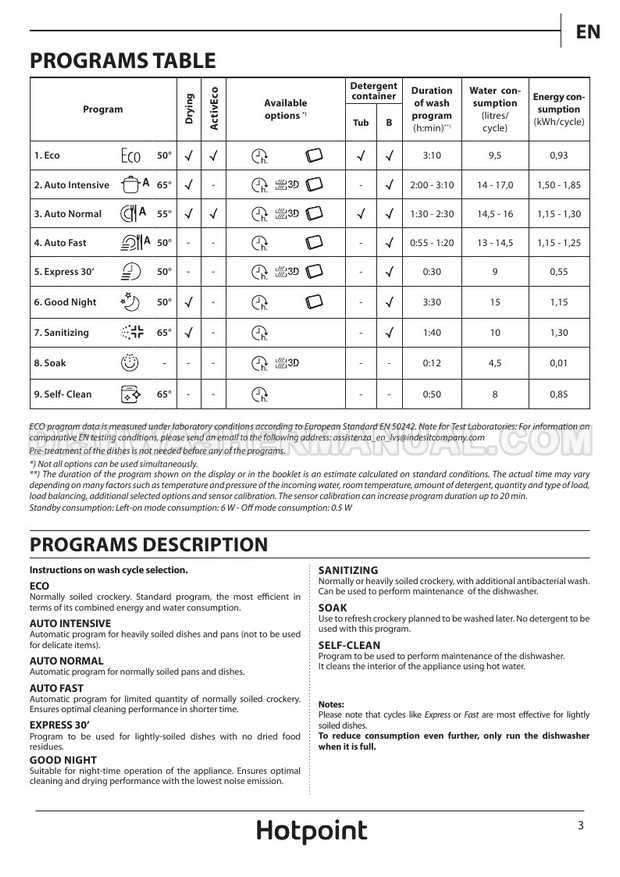 Hotpoint HIO 3C22 WS C Daily Reference Guide