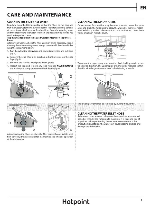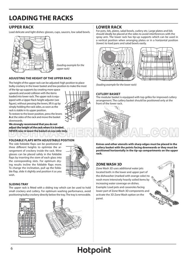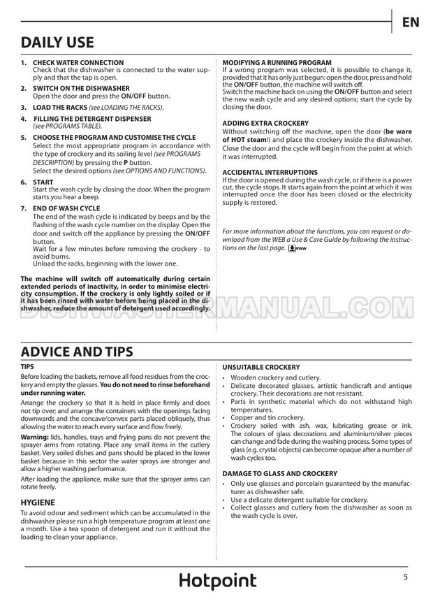 Daily reference guide for Hotpoint HIO 3C22 WS C Ultima dishwashing machine with top control on 8 pages.
