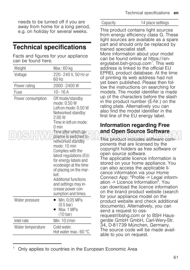 User manual for Siemens SN27YI01CE iQ700 Premium Zeolith with glassZone Freestanding dishwashing machine with top control on 64 pages.